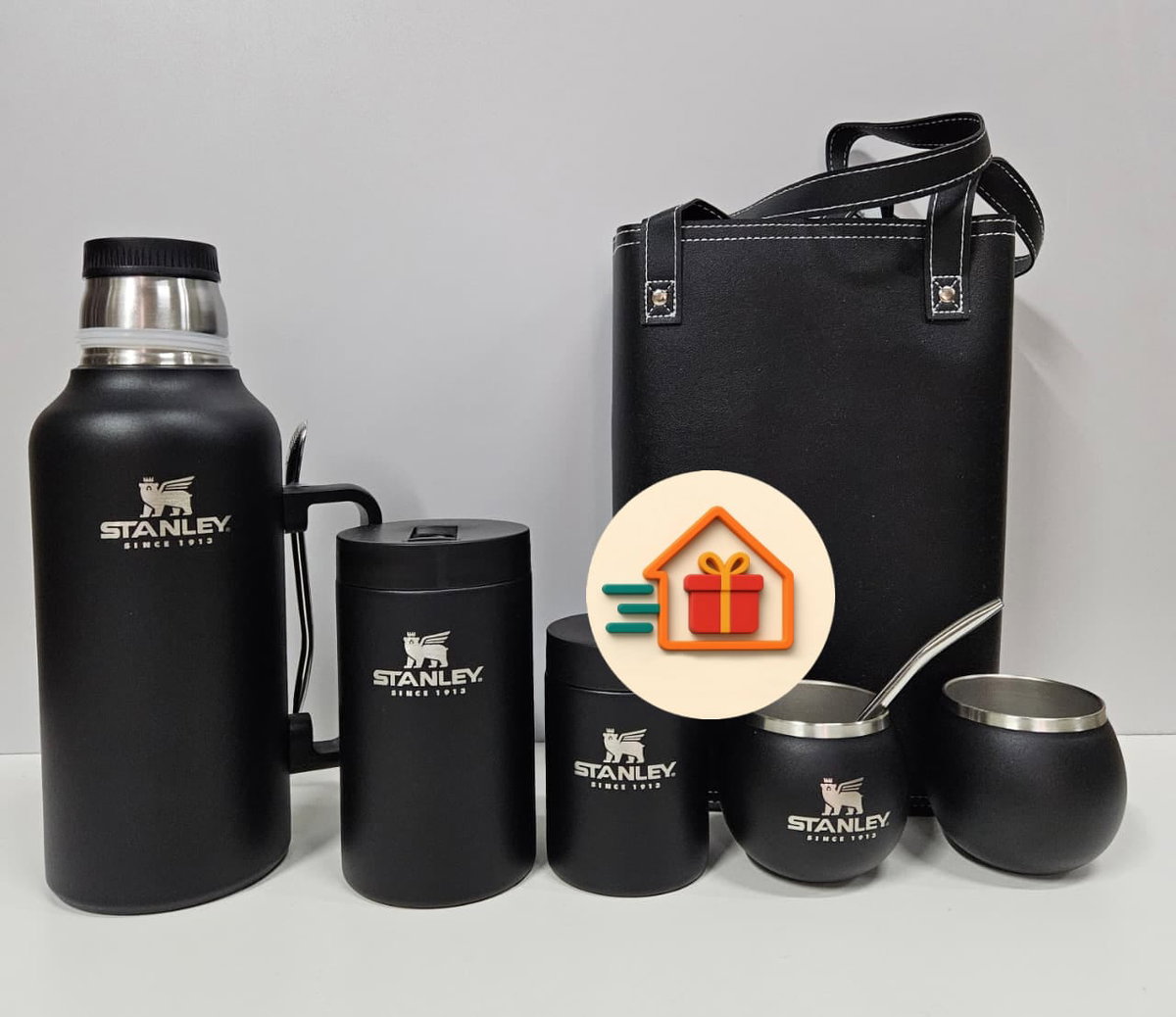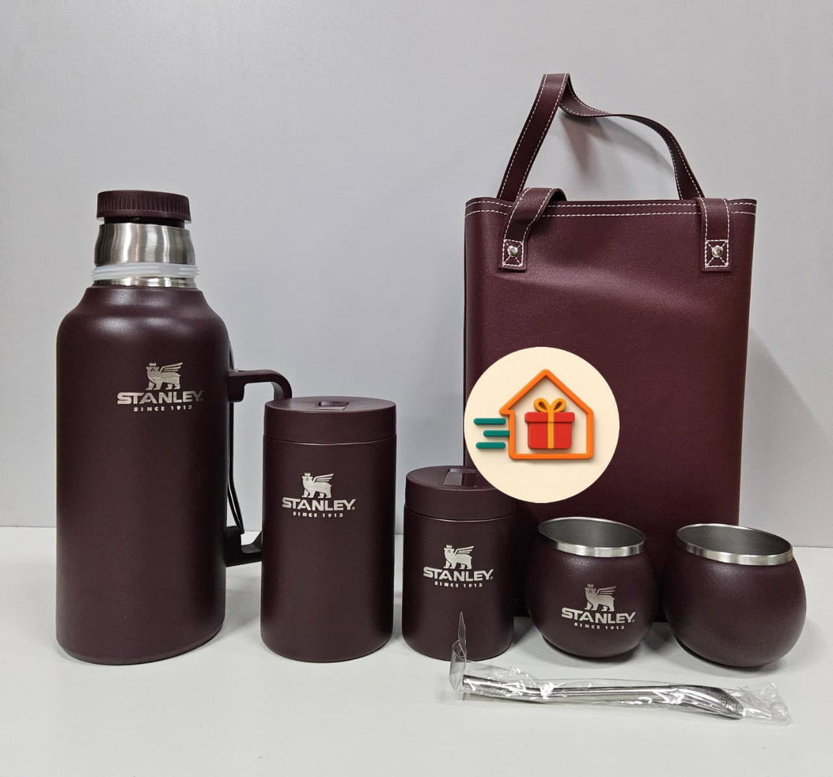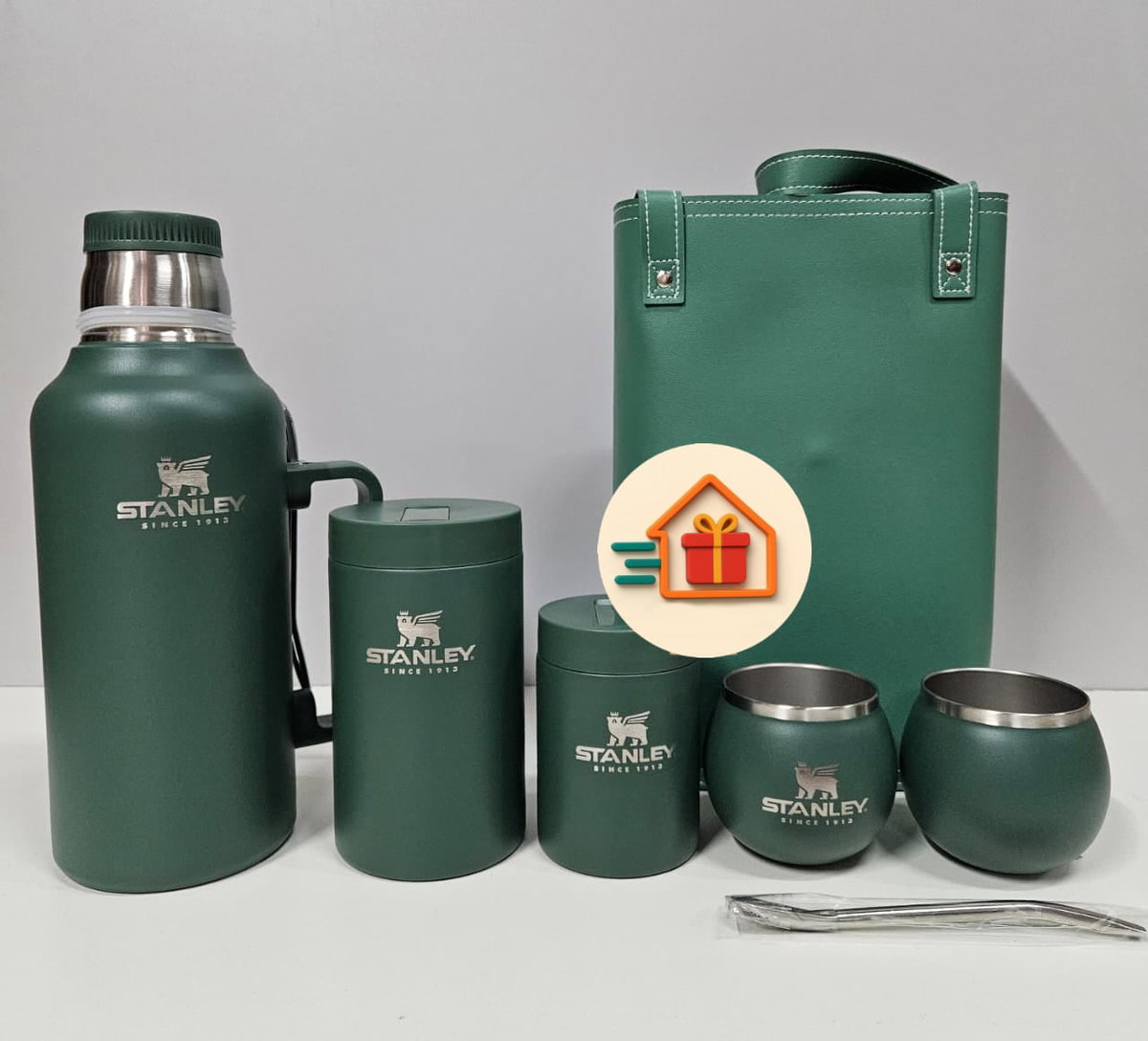 - Bolso de ecocuero. - Latas yerbera y azucarera de acero inoxidable. - 2 mates de acero inoxidable - 2 Bombillas