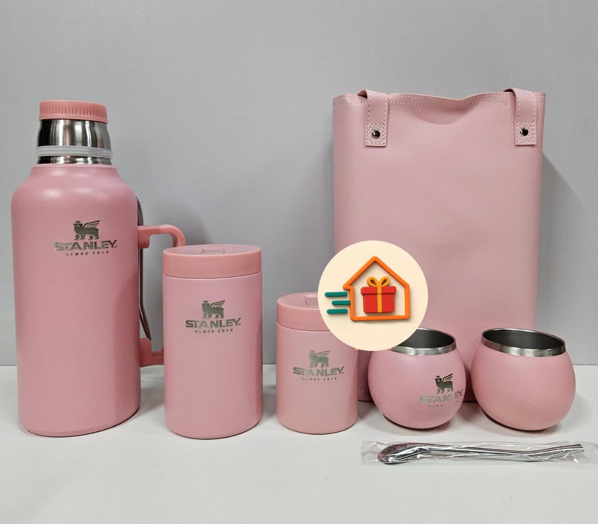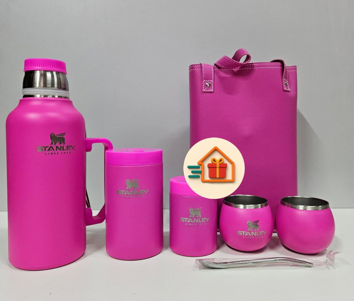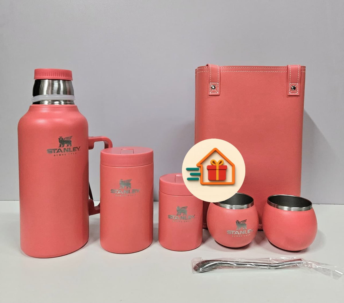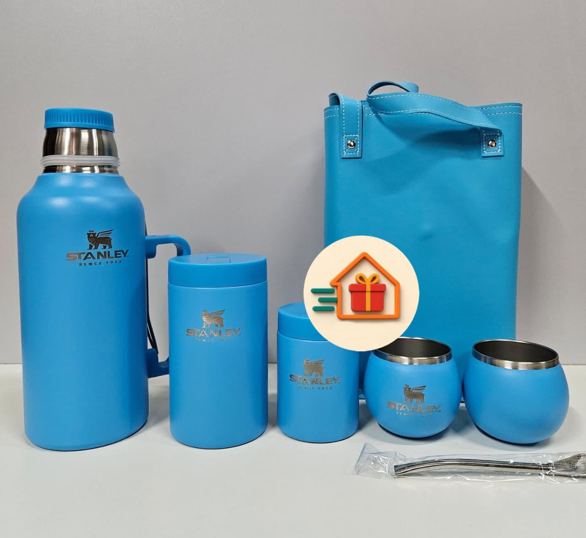 - Bolso de ecocuero. - Latas yerbera y azucarera de acero inoxidable. - 2 mates de acero inoxidable - 2 Bombillas